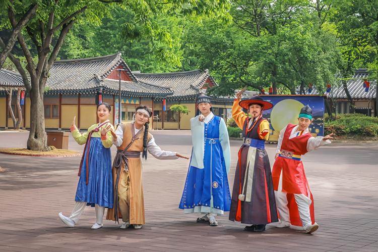 参观韩国民俗村,体验韩国的历史和传统,包括民间音乐、骑马和传统农庄。