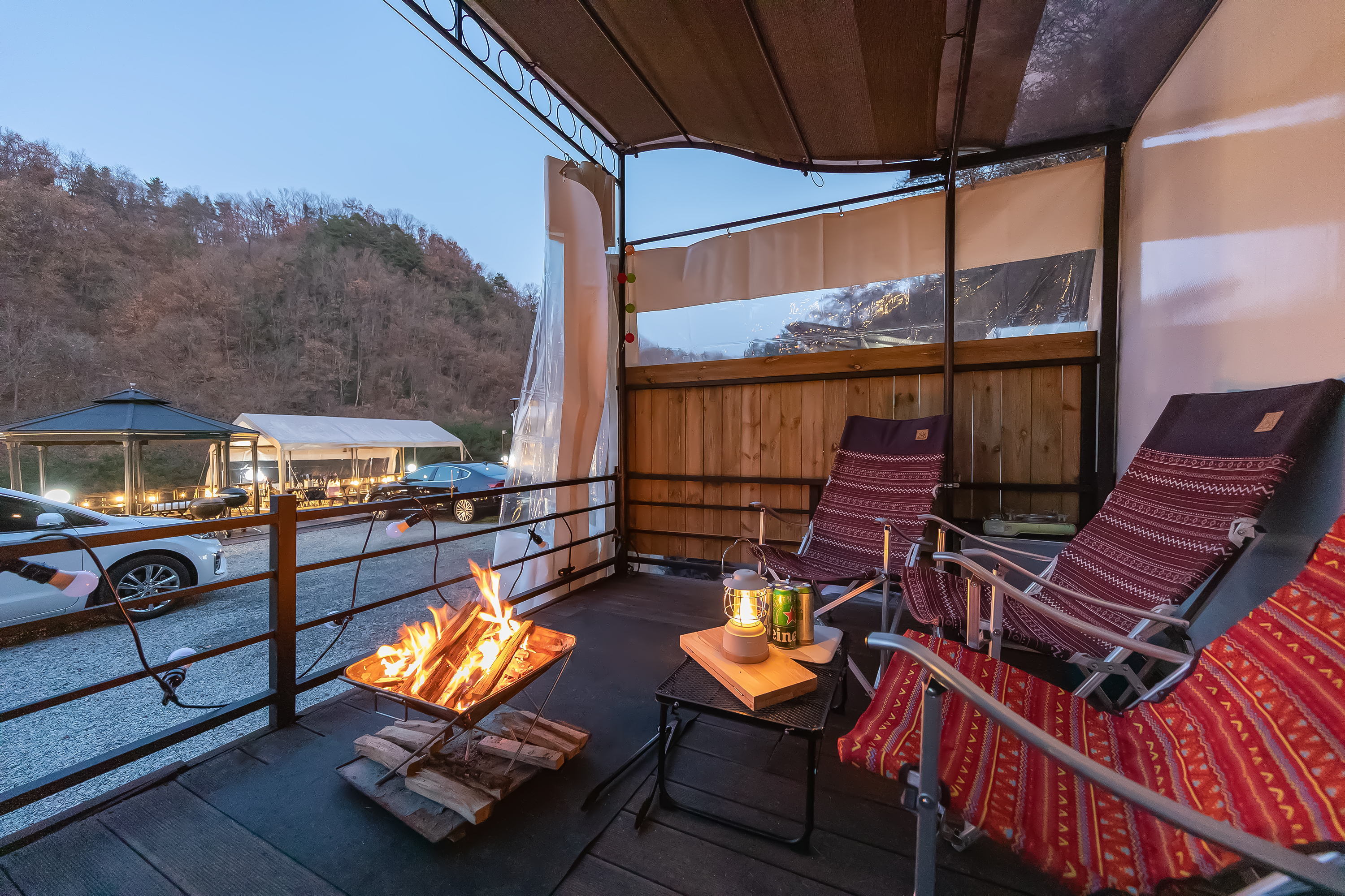 Buzz Glamping 露营区位于江原道春川市,以其轻松悠闲的氛围而闻名。如果想在营地里远离夜晚的喧嚣,非常适合家人、朋友或者情侣来体验露营的乐趣。