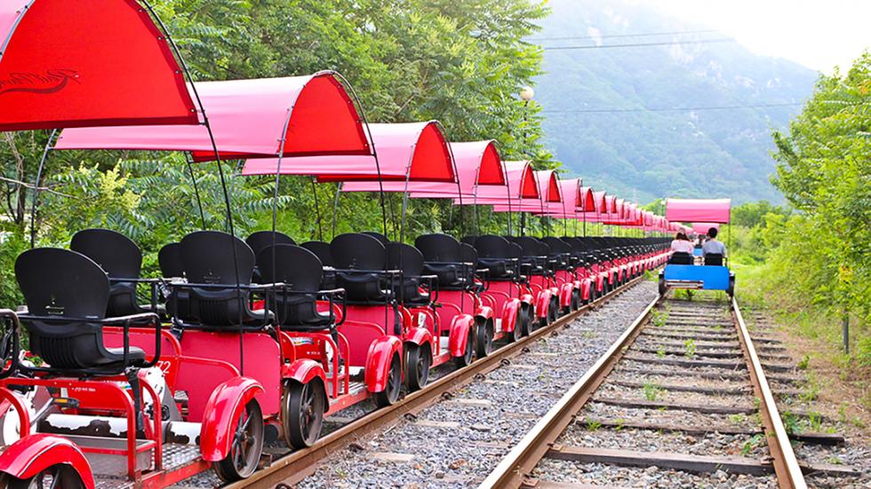 探索首尔附近迷人的伊甸园/美莎公园。它为大自然爱好者提供了独特而短暂的体验,让他们沉浸在盛开的樱花树所创造的风景如画、爆米花般的风景中。这些迷人的生物每一个都有自己独特的名字,展示了它们与其他动物的沟通技巧,并为寻求宁静和愉快环境的儿童和成人提供了一个有趣的逃生场所。除了自然美景外,南怡岛还为家庭度假和休闲提供了多种便利设施。是一个理想的活动场所。沿着古老的铁轨骑行,欣赏迷人的乡村风光,包括山脉、河流和森林。这种惊险又有趣的体验提供了一种令人难忘的欣赏美的方式。